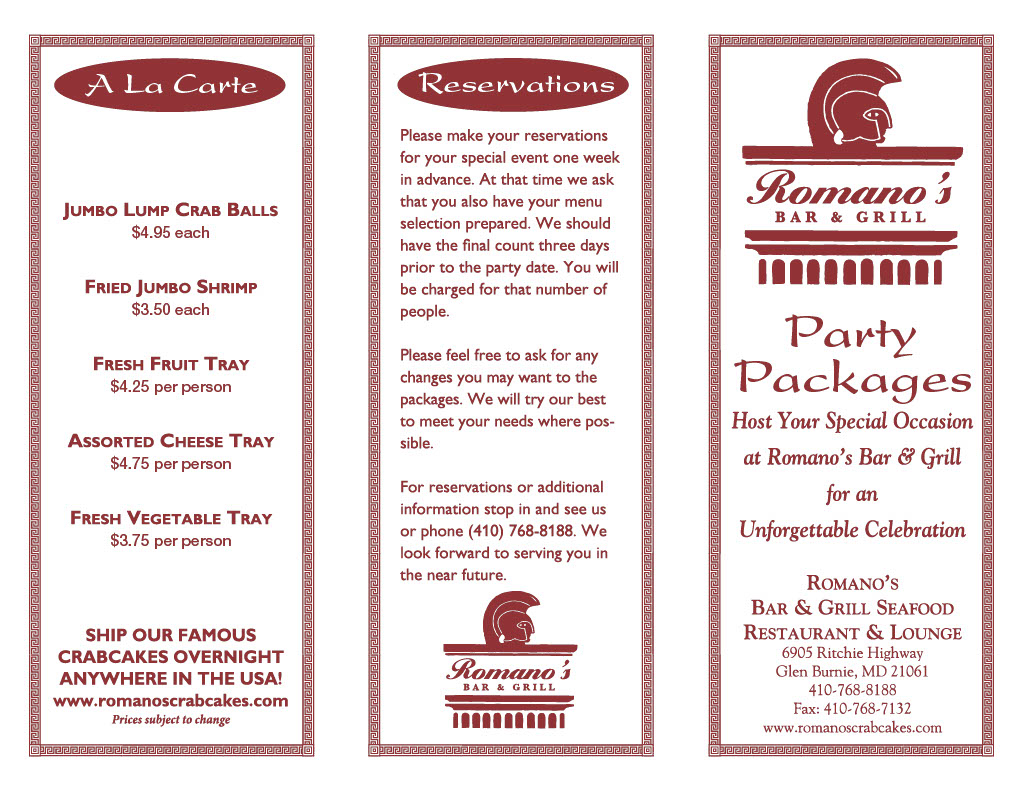 Let Romanos help you create the perfect event, whether you are planning a business luncheon, all day meeting, rehearsal dinner, fundraiser, surprise party, anniversary or holiday party.